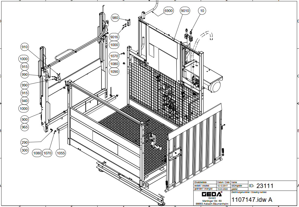 1107147 A_23111 GEDA 500Z 1 KLAPPE, 1 RAMPEErsatzteillisten | ET348DEGB202203 | GEDA | GEDA 500 Z / GEDA 500 Z DUO | Materialaufzüge