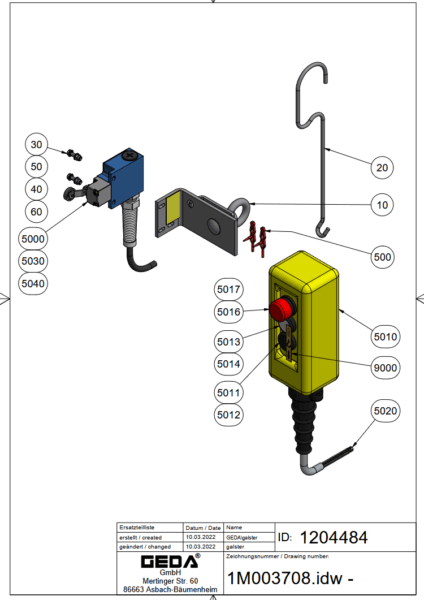 1168239 -_10118 SCHLAFFSEILSCHALTERErsatzteillisten | ET408DEGB202204 | ET408DEGB202204 | ET408DEGB202204 | GEDA | GEDA FIXLIFT 250 | GEDA LIFT 200 STANDARD | GEDA LIFT 250 COMFORT | Leiterlifte