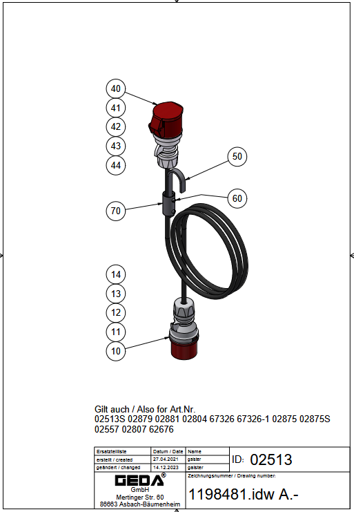 Ersatzteilliste 1198481 A.-_02513 VERLÄNGERUNGSKABEL 20M 7-POLIG ROT