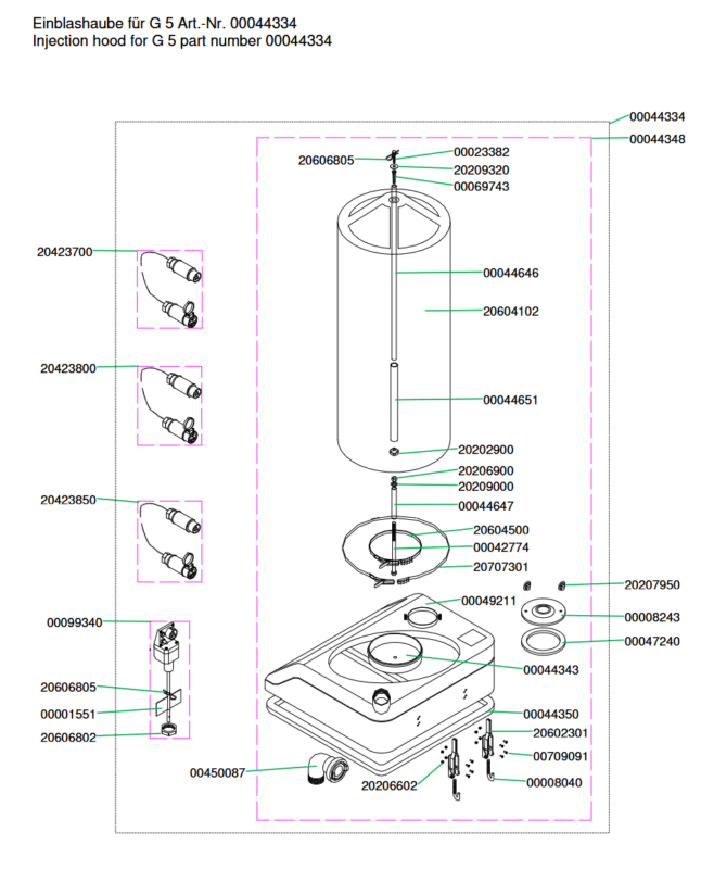 Ersatzteilliste Einblashaube für G 4, RITMO XL, HM 24 Art.-Nr. 20600213: