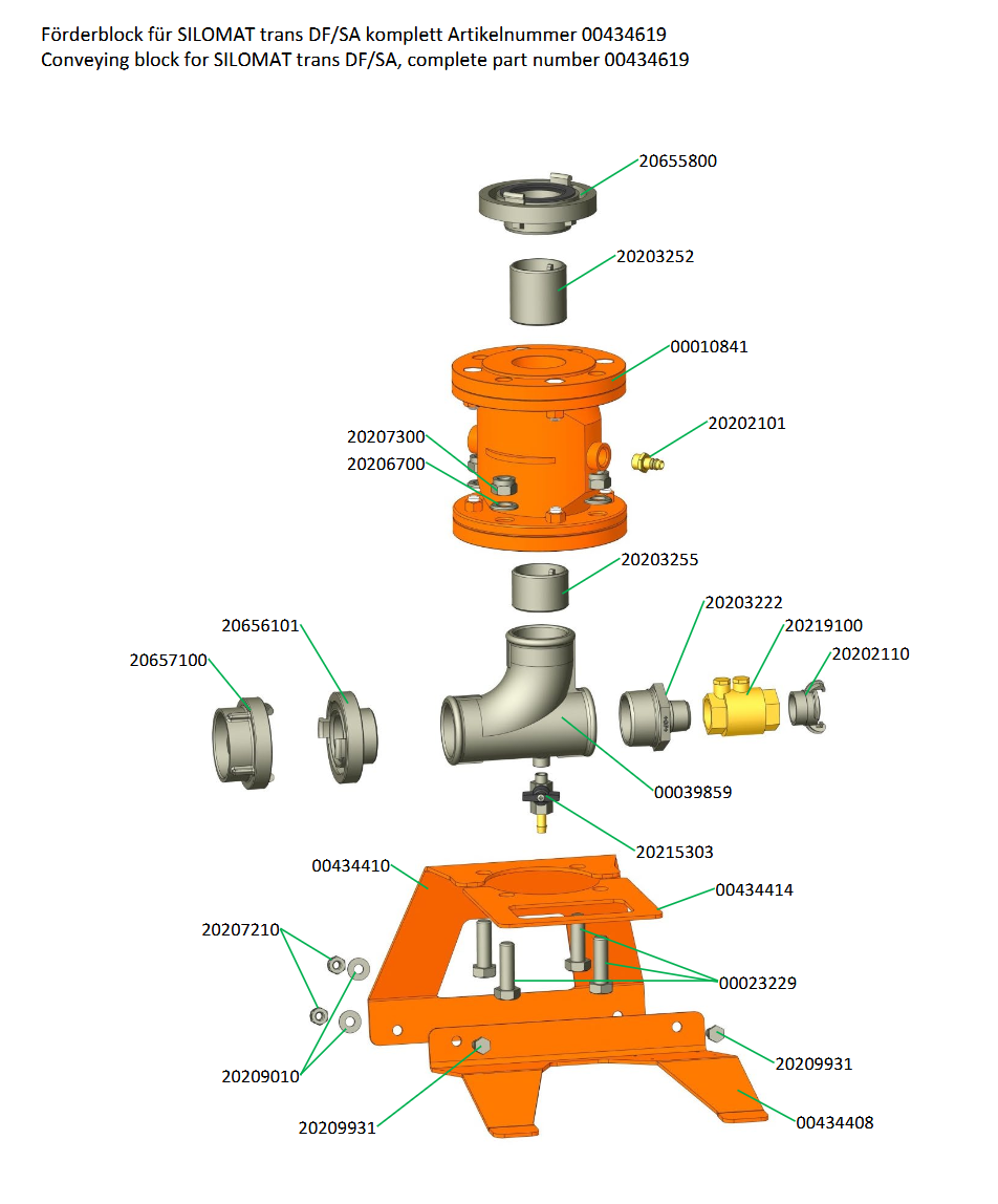 Ersatzteilliste Förderblock für SILOMAT trans DF/SA komplett Artikelnummer 00434619: