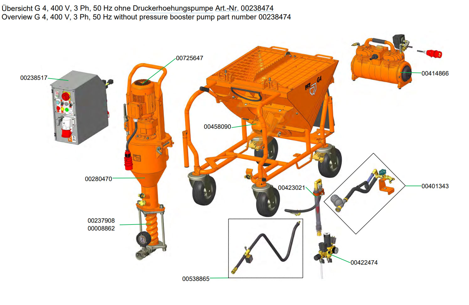 G 4, 400 V, 3 Ph, 50 Hz ohne Druckerhöhungspumpe Art.-Nr. 00238474Ersatzteillisten | G 4 | G Serie | PFT