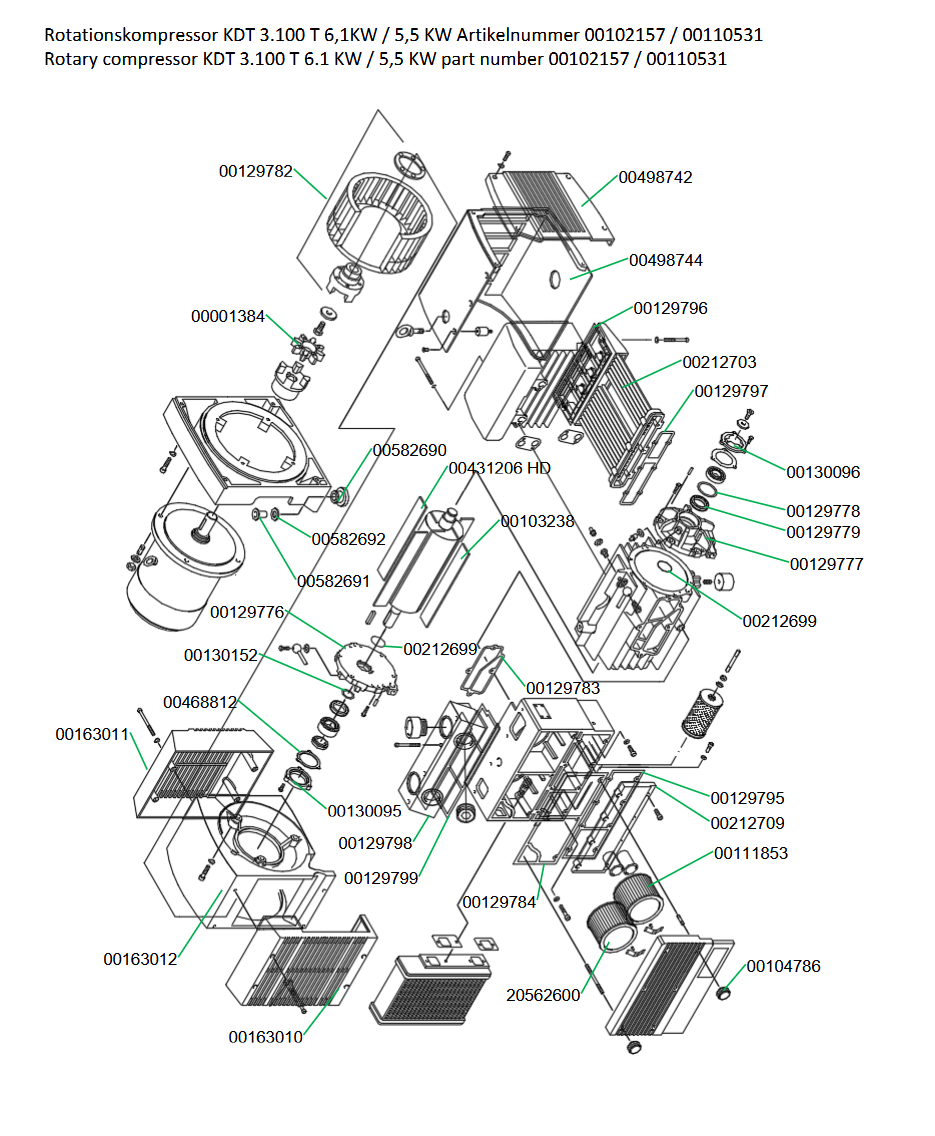 Ersatzteilliste Rotationskompressor KDT 3.100 T 6,1KW / 5,5 KW Artikelnummer 00102157 / 00110531: