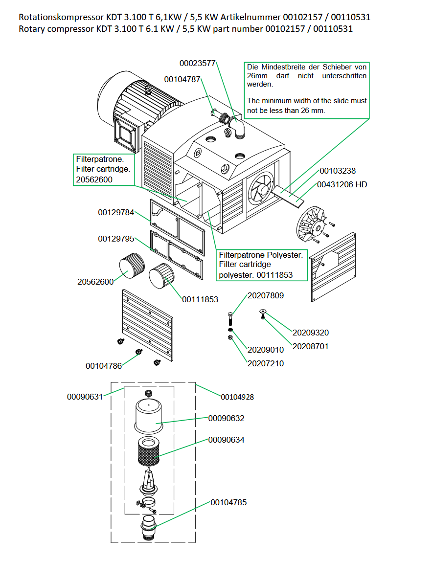 Ersatzteilliste Rotationskompressor KDT 3.100 T 6,1KW / 5,5 KW Artikelnummer 00102157 / 00110531: