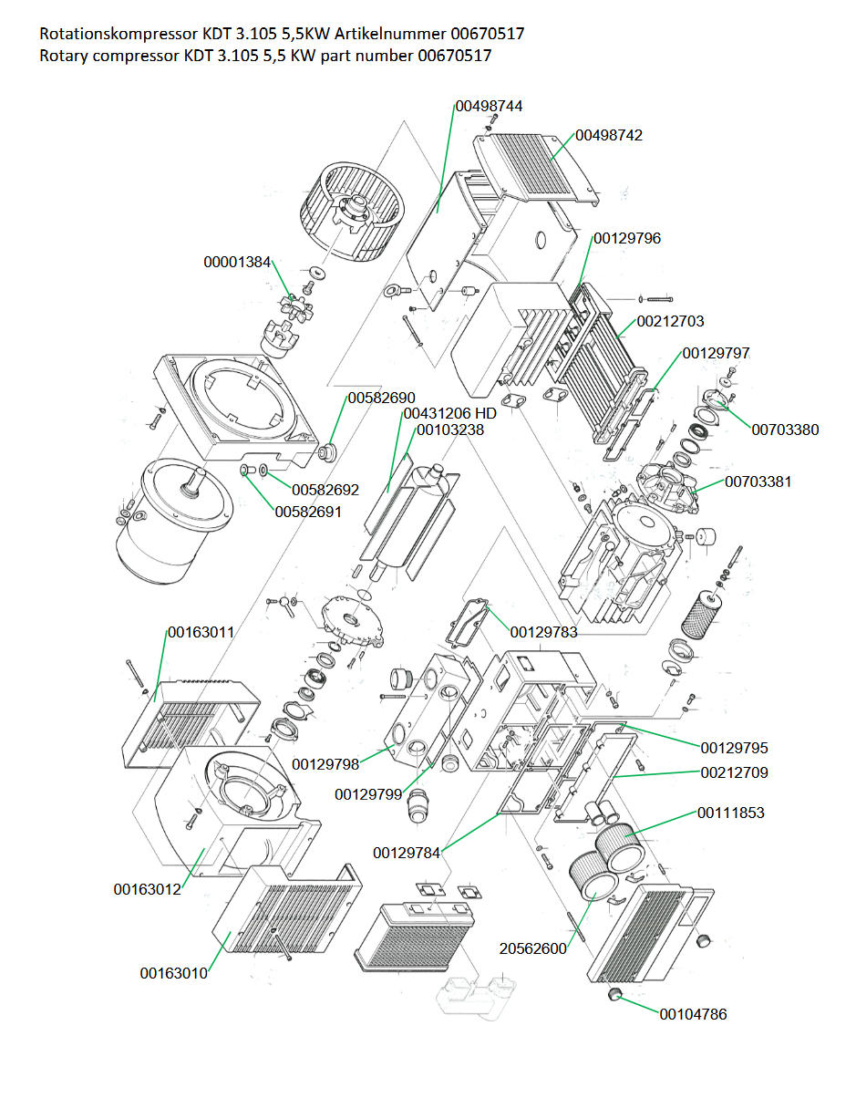 Ersatzteilliste Rotationskompressor KDT 3.105 5,5KW Artikelnummer 00670517: