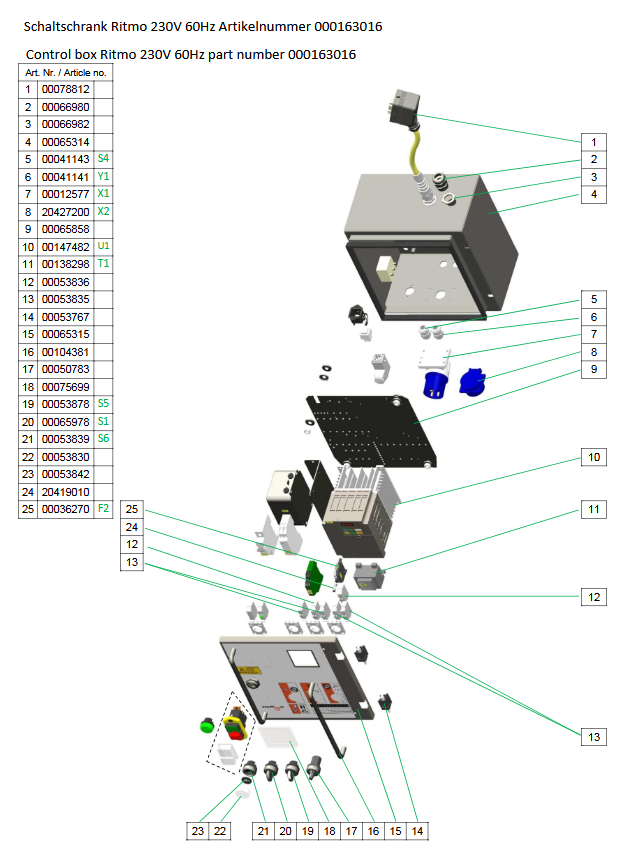 Ersatzteilliste Schaltschrank Ritmo 230V 60Hz Artikelnummer 000163016: